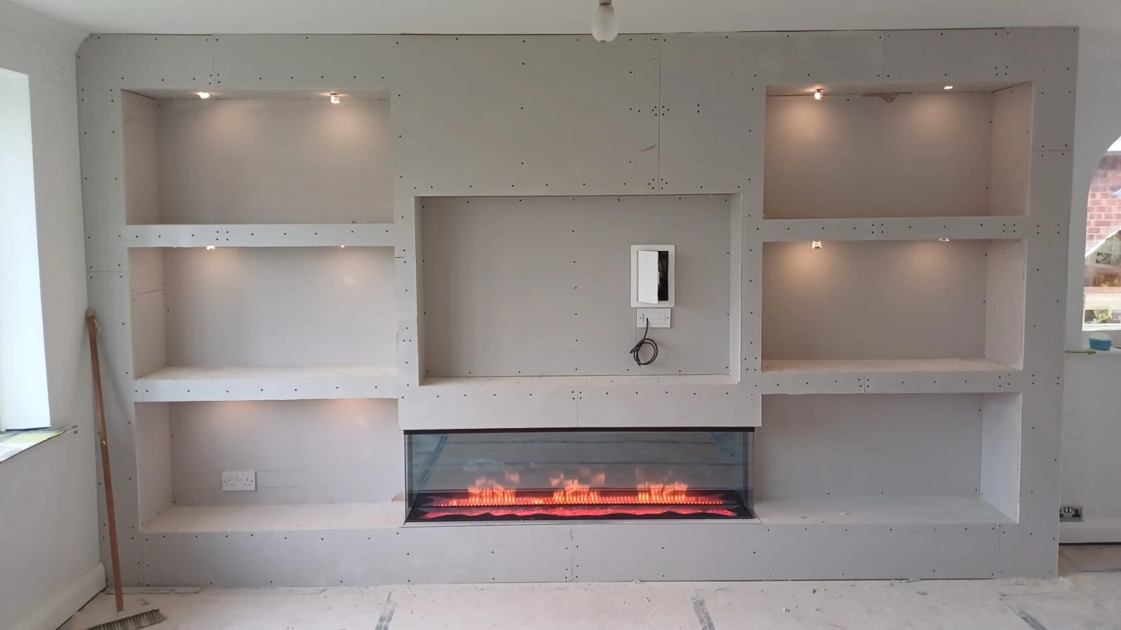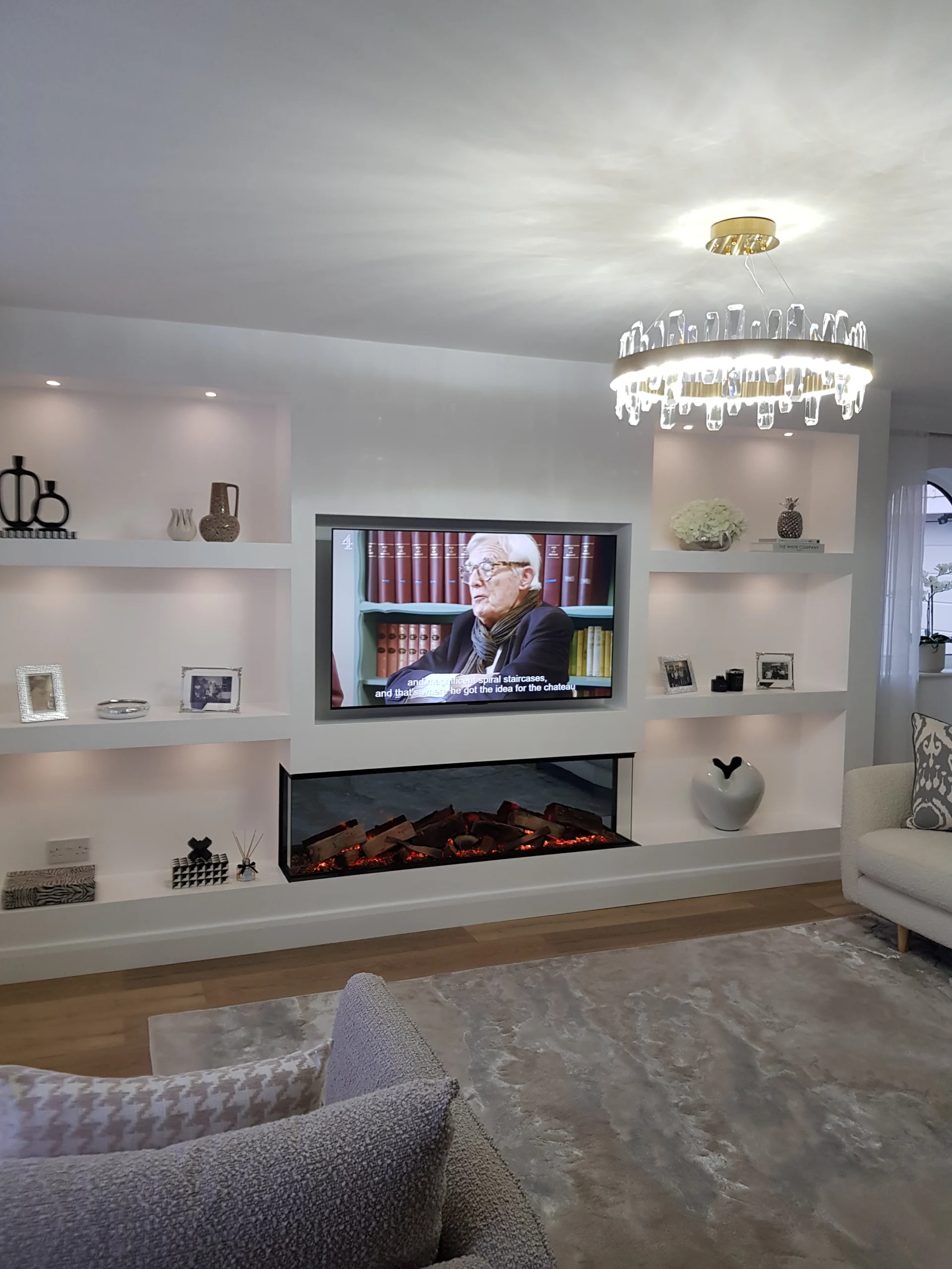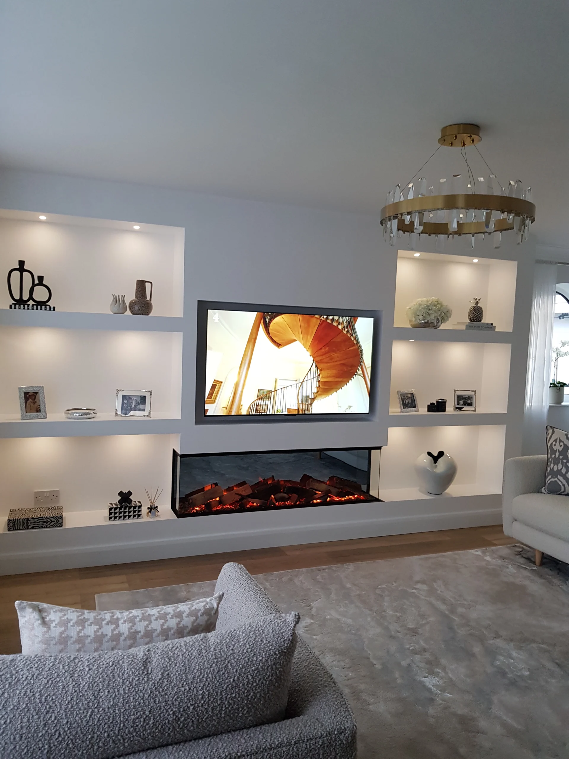 A stunning installation completed by the team here at Fireplace Studio, with Evonic Halo 1500 Built-In  Fire.
