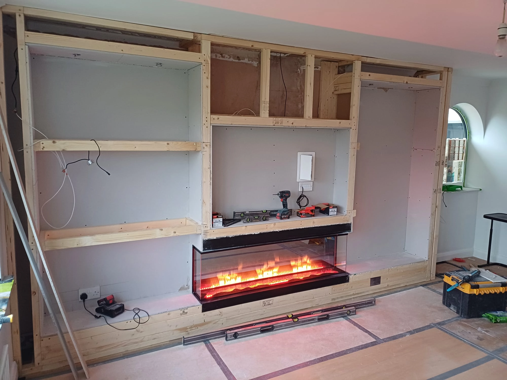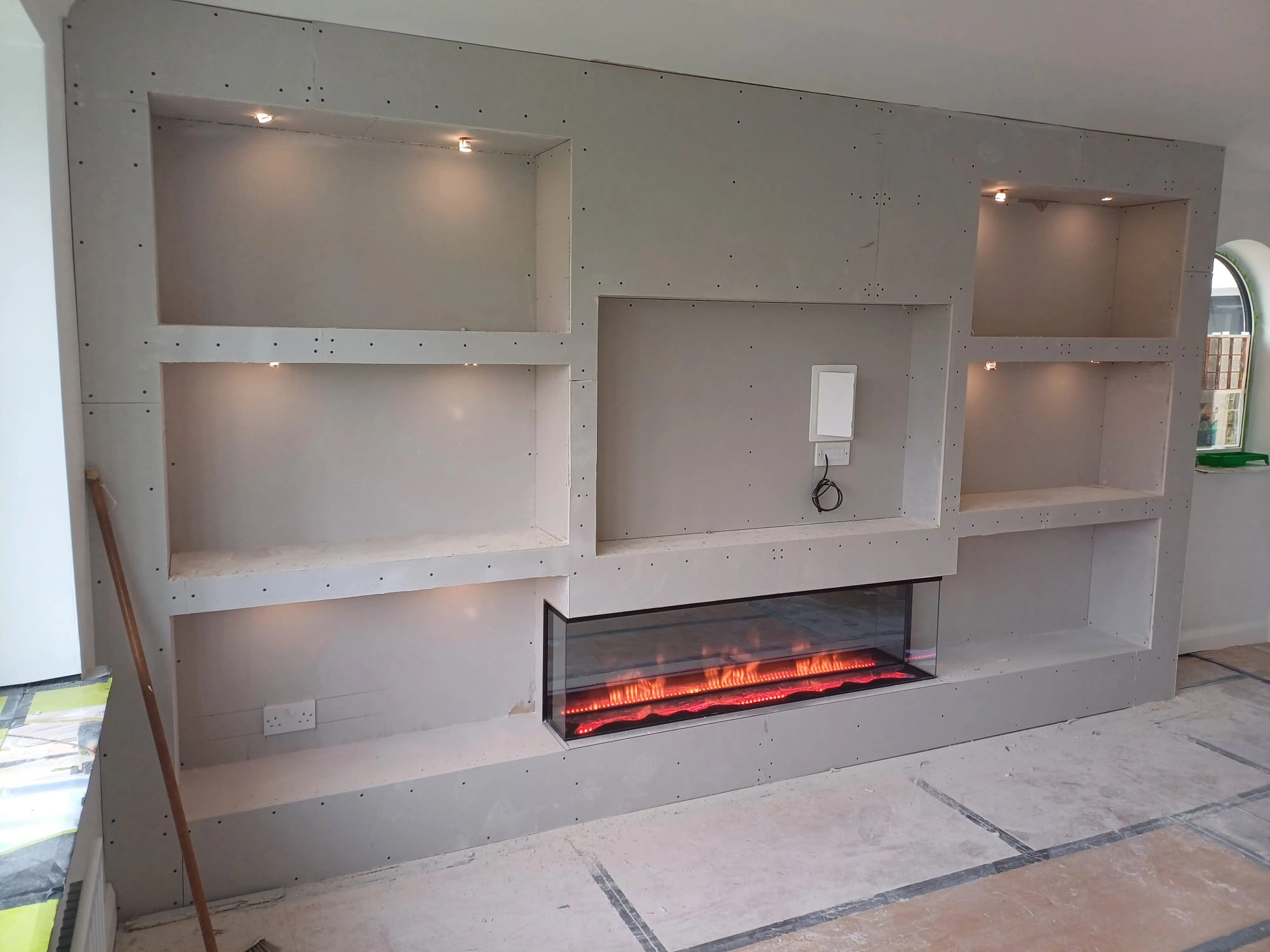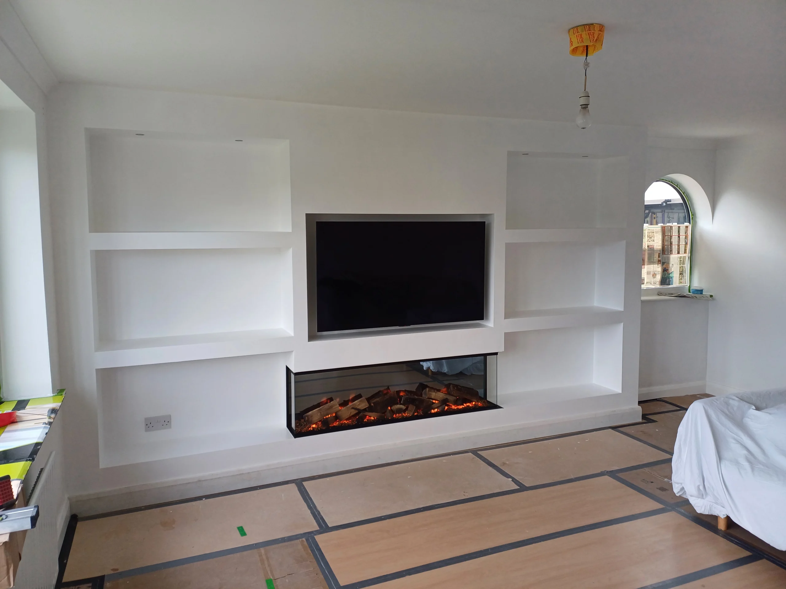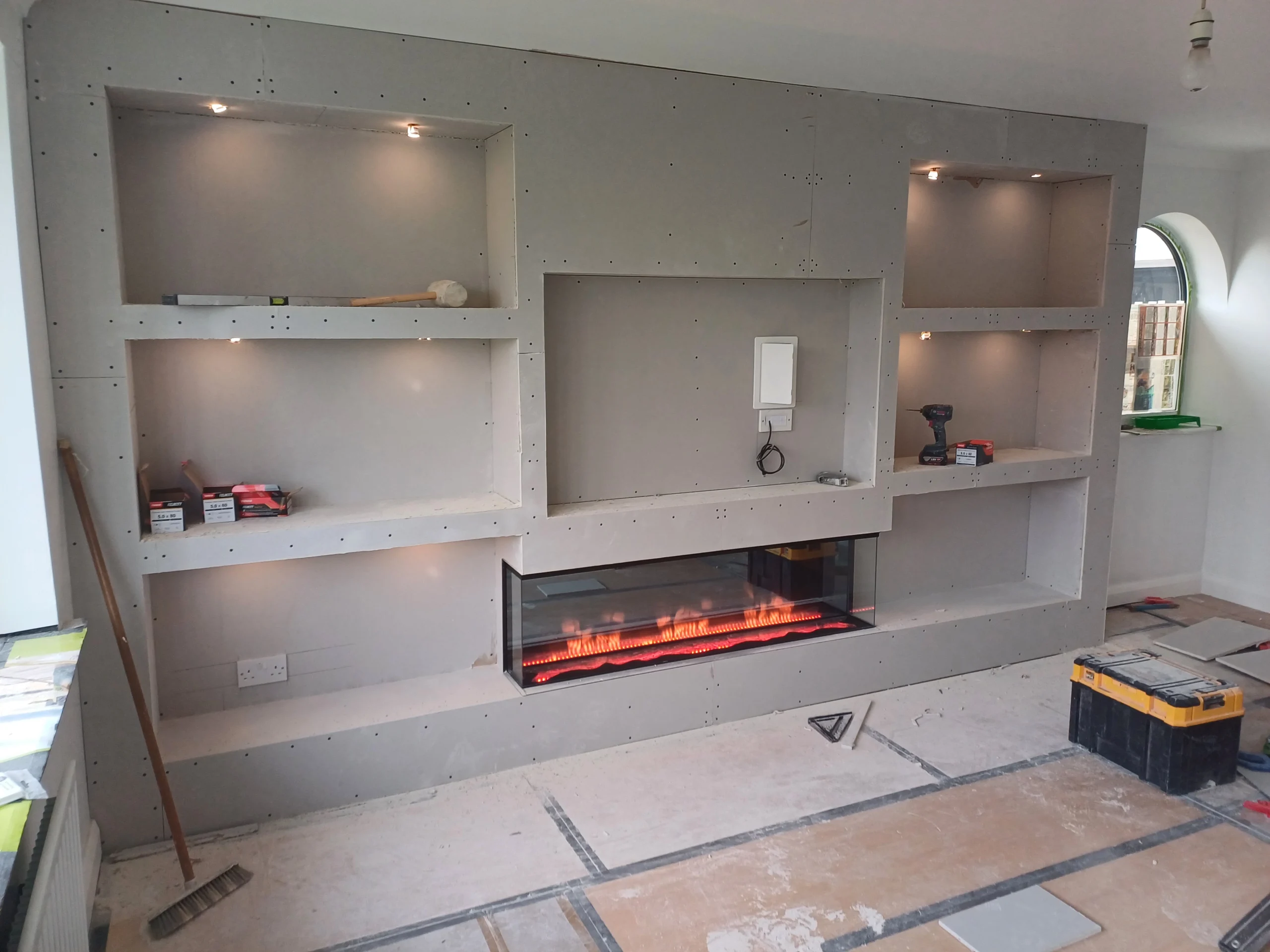 A stunning installation completed by the team here at Fireplace Studio, with Evonic Halo 1500 Built-In  Fire.